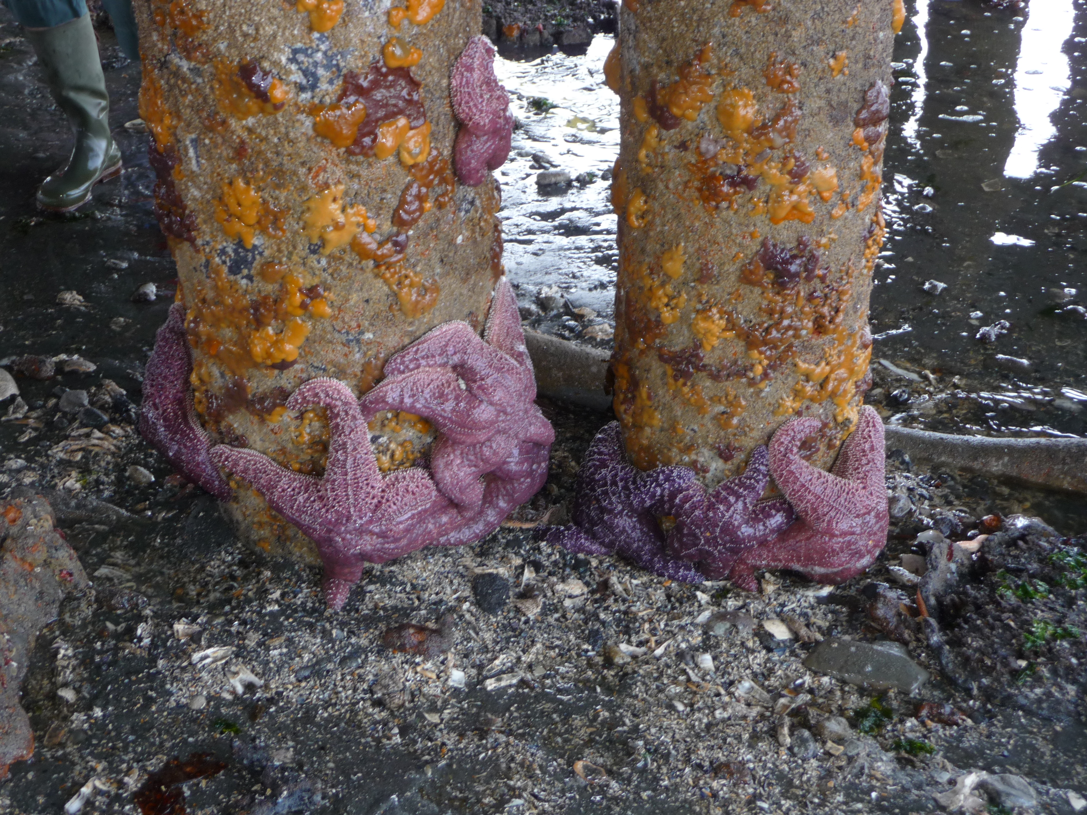 When the tide is very low ~ it was -3.4′ the day I took these photos ~ you can see the creatures that live under the ferry dock.