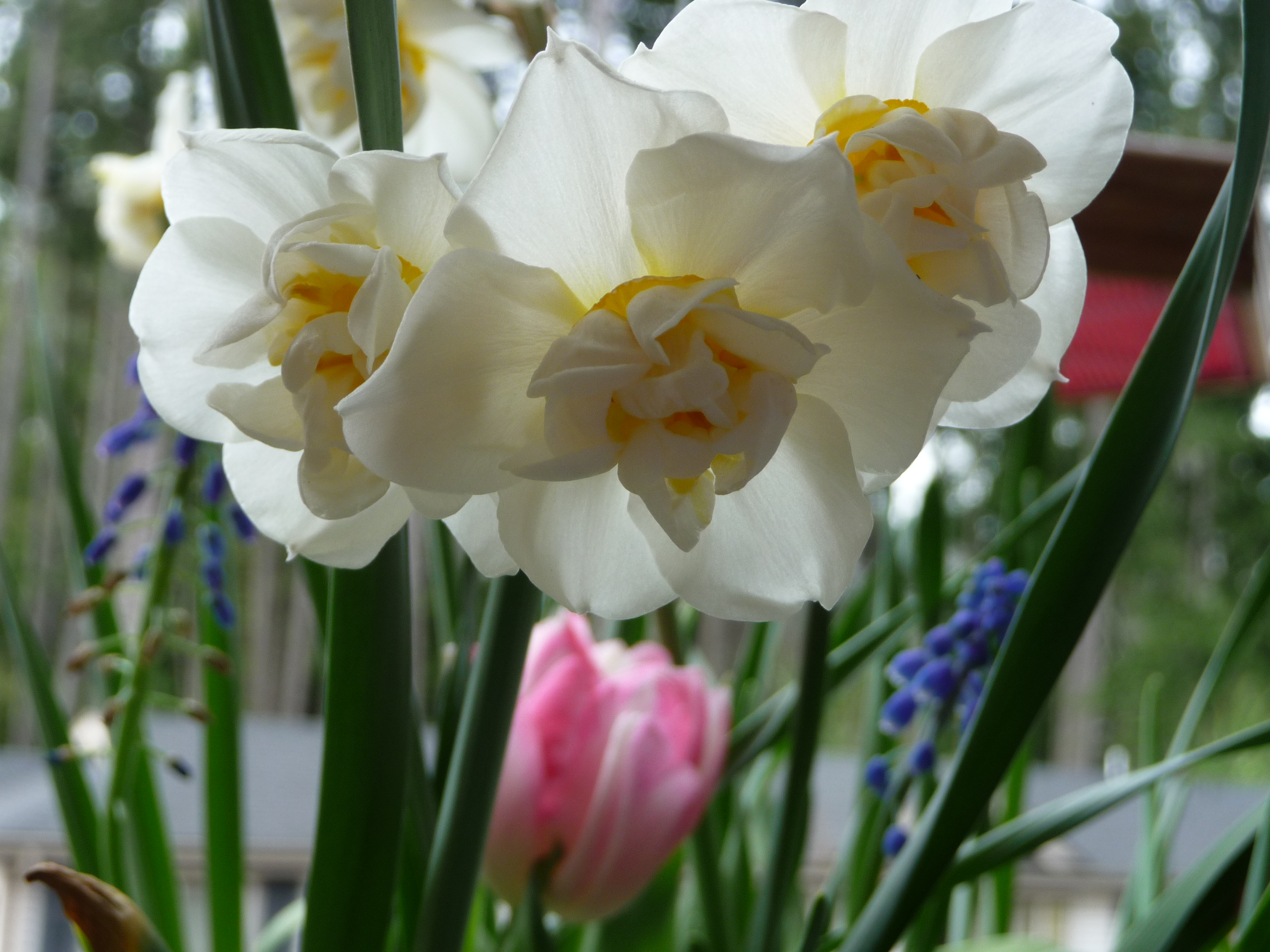 Hyacinths are favorite bulbs because they herald Spring. I discovered these tiny grape hyacinths in Edmonds and love their delicate addition to a container of bulbs.