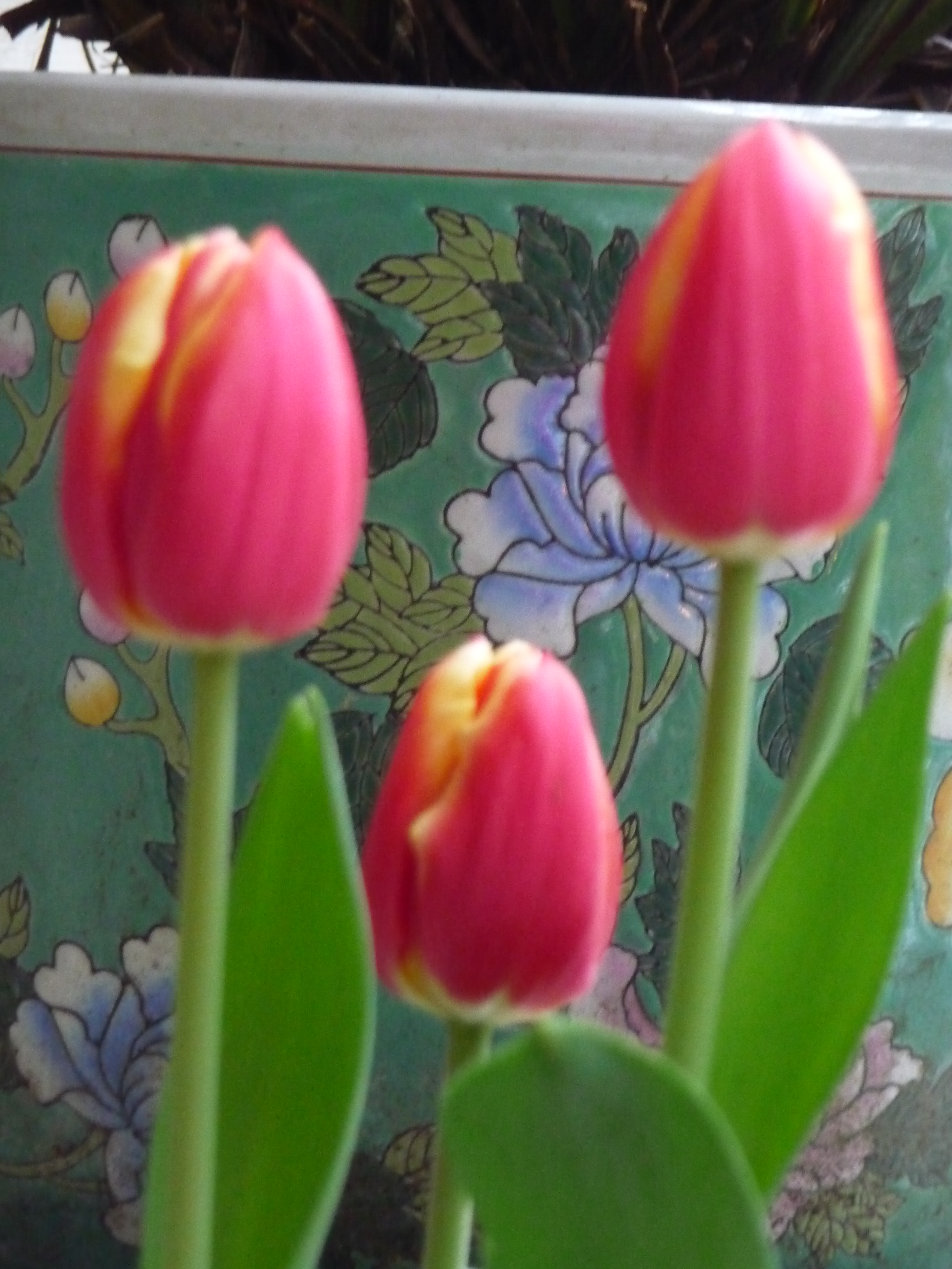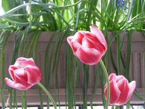 My absolutely favorite tulip is the Angelique because it looks like a peony. They were a bit of a disappointment this year because I jammed too many bulbs into my container. Still, I love this photo.
