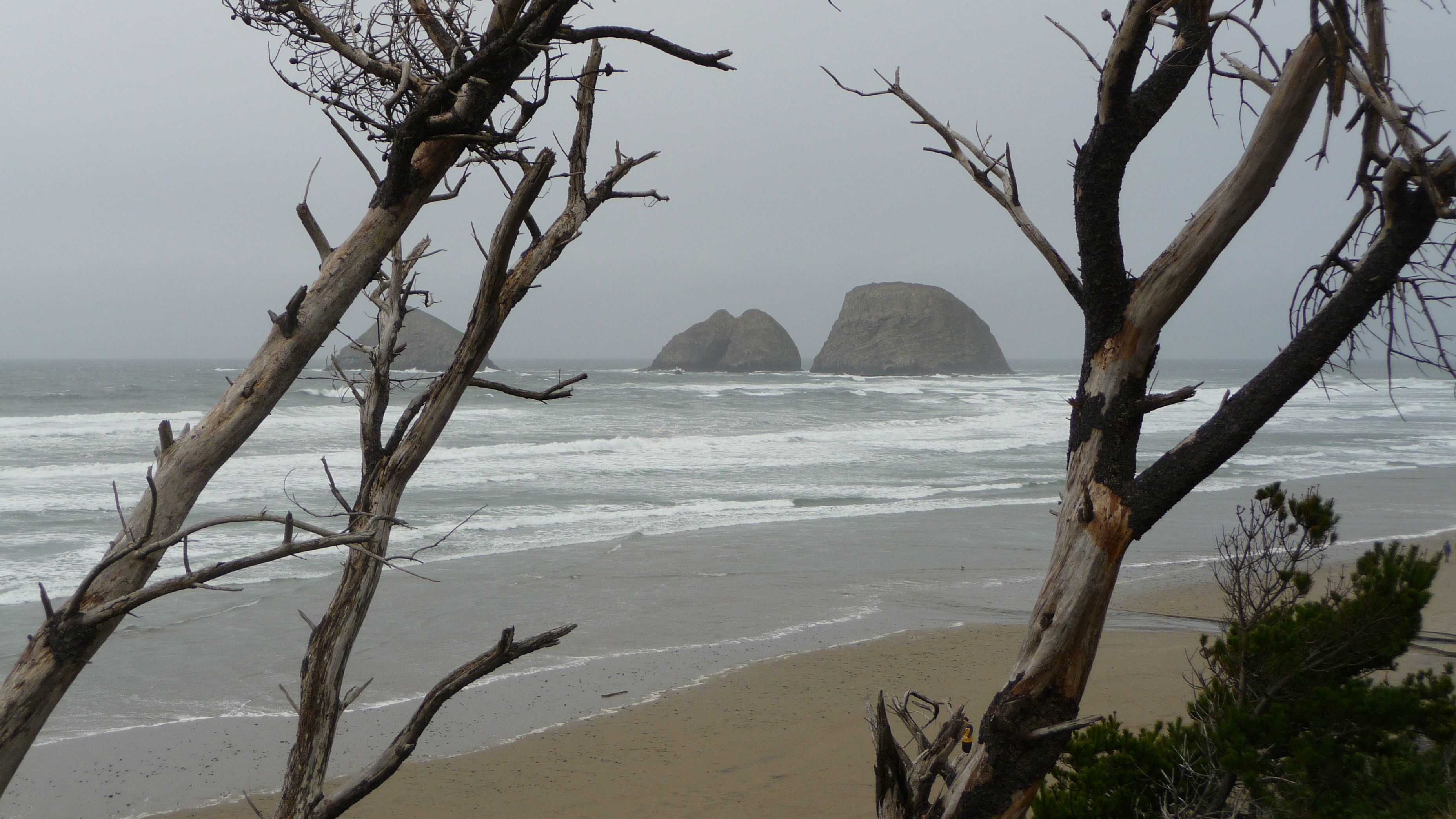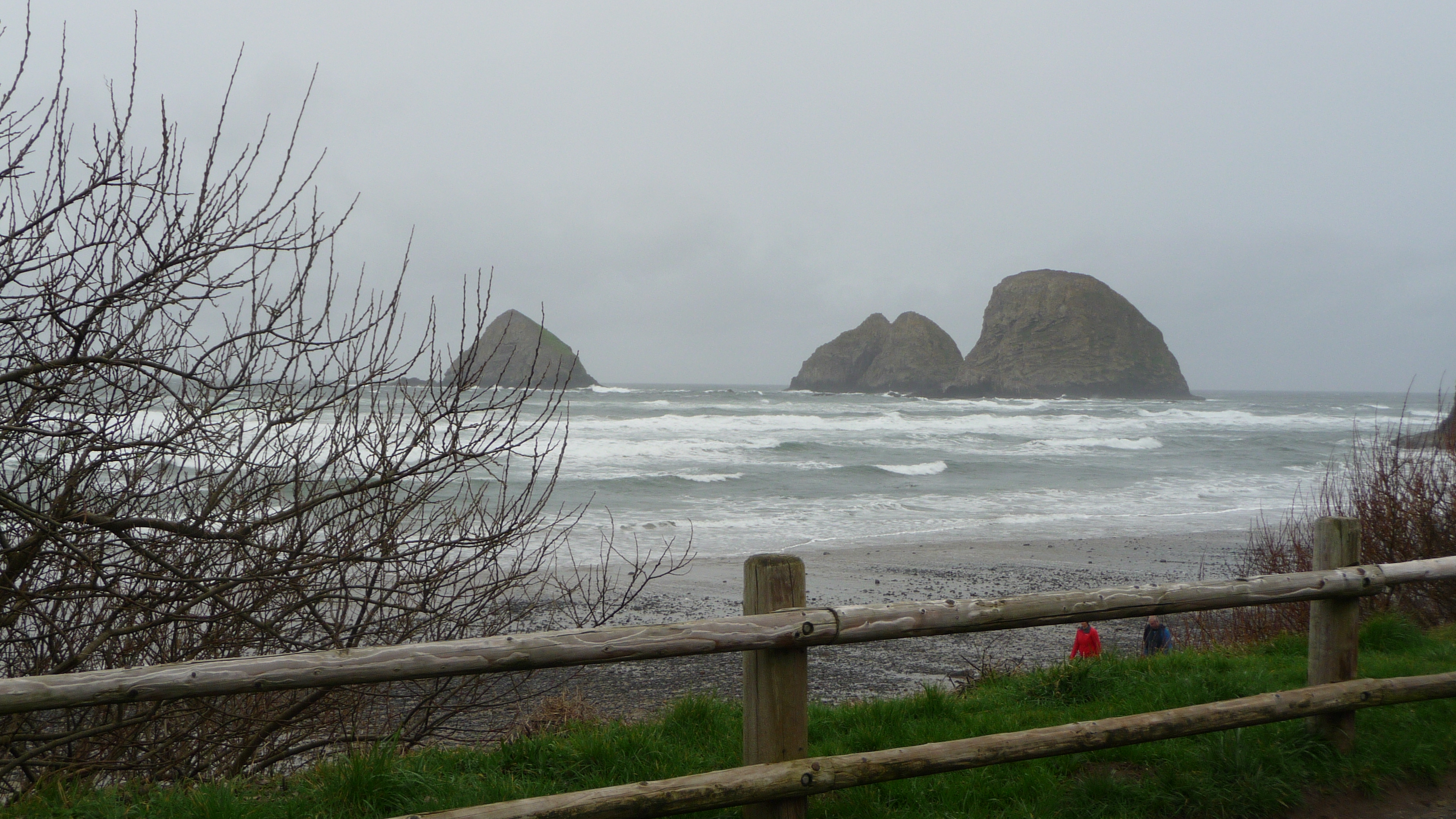 By the time we arrived in Cannon Beach, it was raining quite heavily, and we were starving. We ate a hearty lunch at the Driftwood before setting out on an unsuccessful hunt for the legendary haystock rocks. The town has grown substantially since I was last there, and I suspect the rocks were obscured from view by condos and inns.