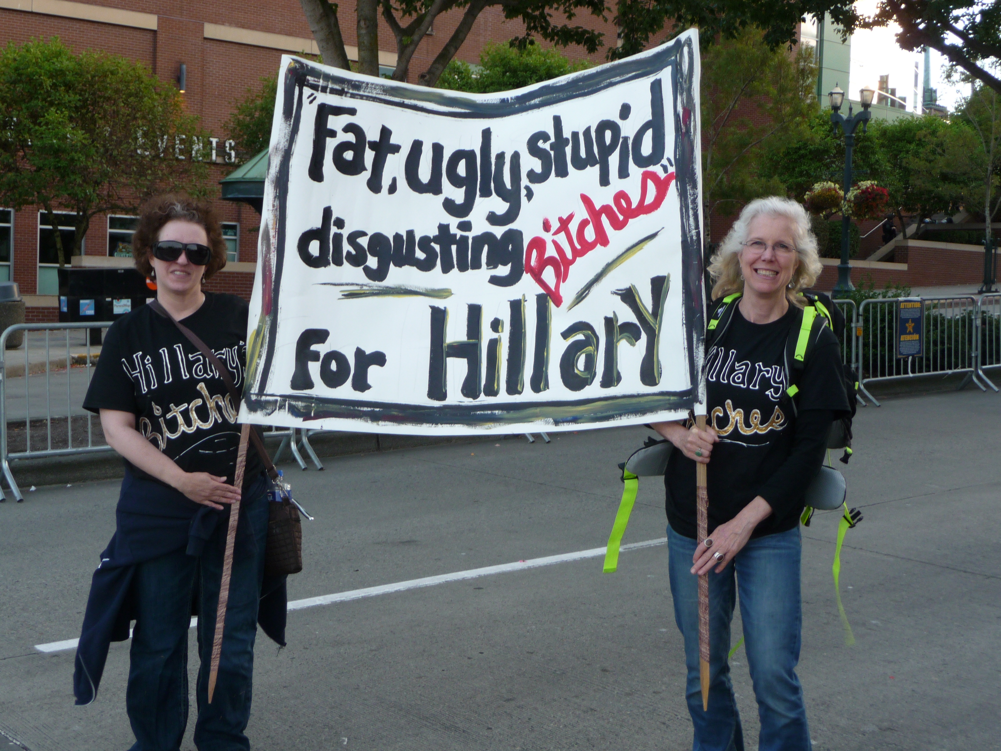 This sign made me laugh because these lovely ladies are obviously not fat, ugly, stupid, or disgusting. Of course, that’s how Donald Trump sees us. And, that’s a huge reason he won’t be getting my vote. It appears he may have abused his second wife Marla Maples, and he has proudly declared that he lusts after his daughter Ivanka. I’ll share the other reasons I’m not voting for Trump when I review The Making of Donald Trump.