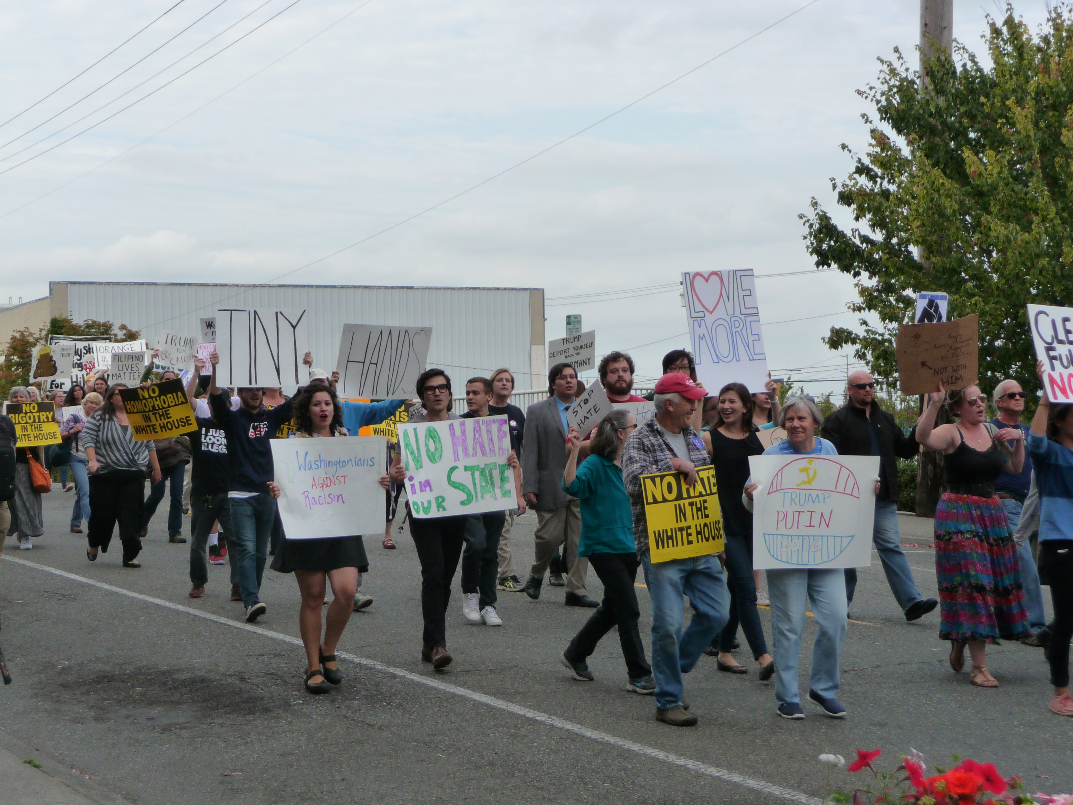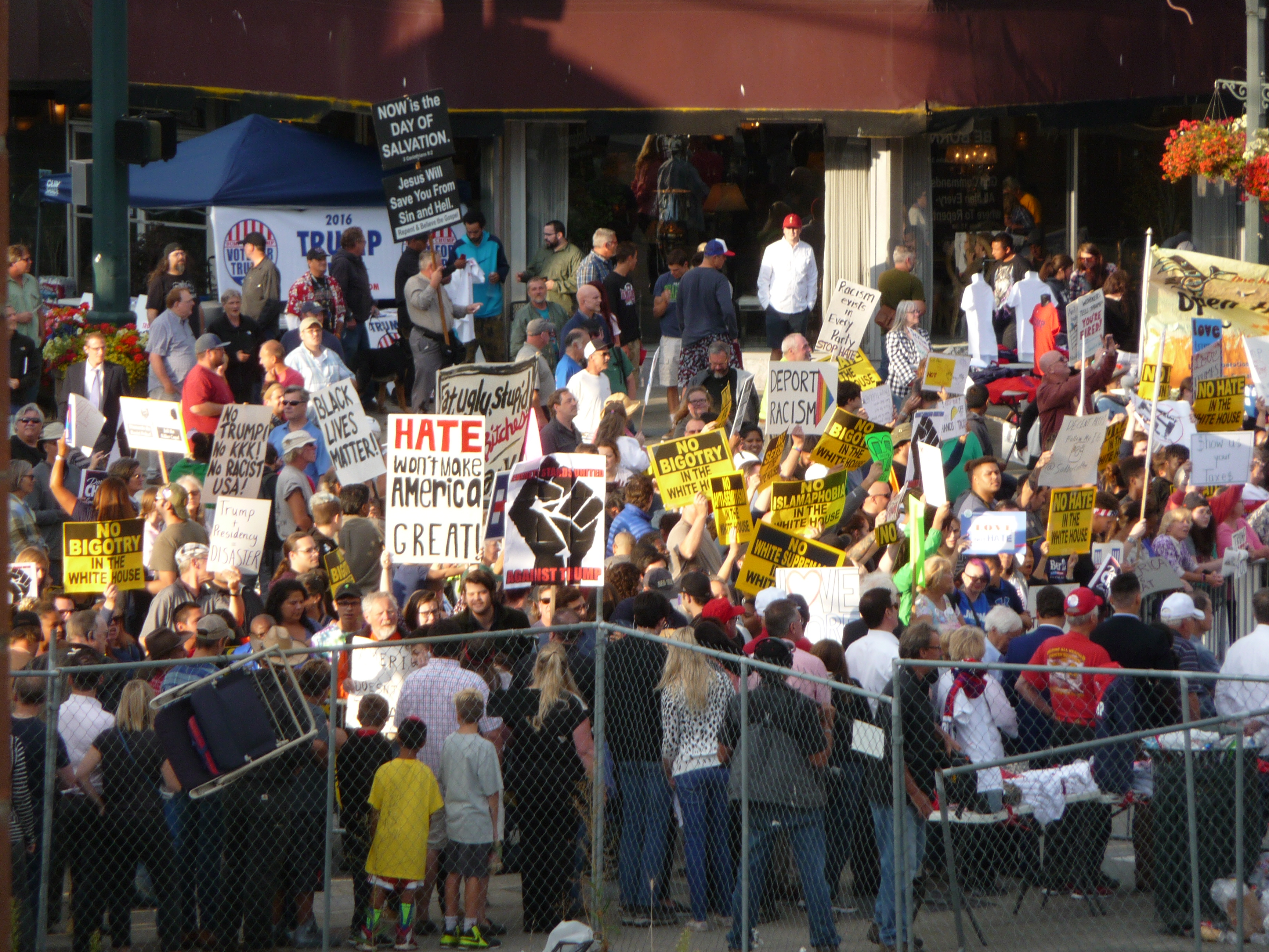 Most of the protest signs called for love to trump hate and for an end to racism and bigotry.