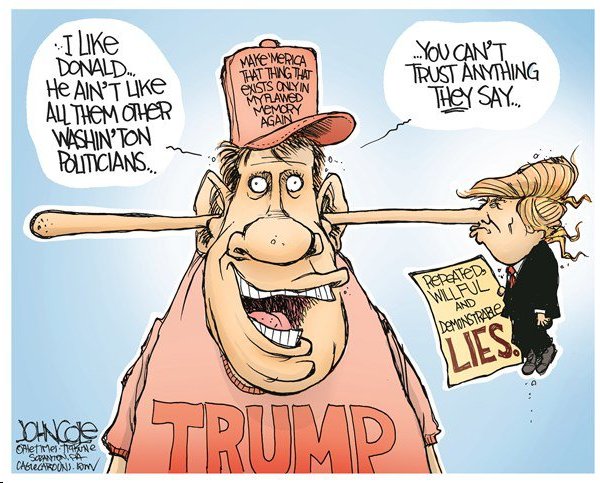 When he applied for a casino license in New Jersey, Donald lied about the Justice Department’s investigation which would have disqualified him from casino ownership. Ditto for tax evasion and his business associations with mobsters, drug dealers, and convicted felons.