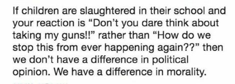 We’ve all been seduced into believing the myth that guns used for hunting are constitutionally protected because nobody ~ especially politicians ~ wants to fuck up the potluck and tell crazy Uncle Joe that his lust for killing Bambi is more than a little sick. Nobody wants to call him an asshole because he loves his guns more than his grandkids. We’re all a little bit scared to confiscate his guns because he just might shoot us.