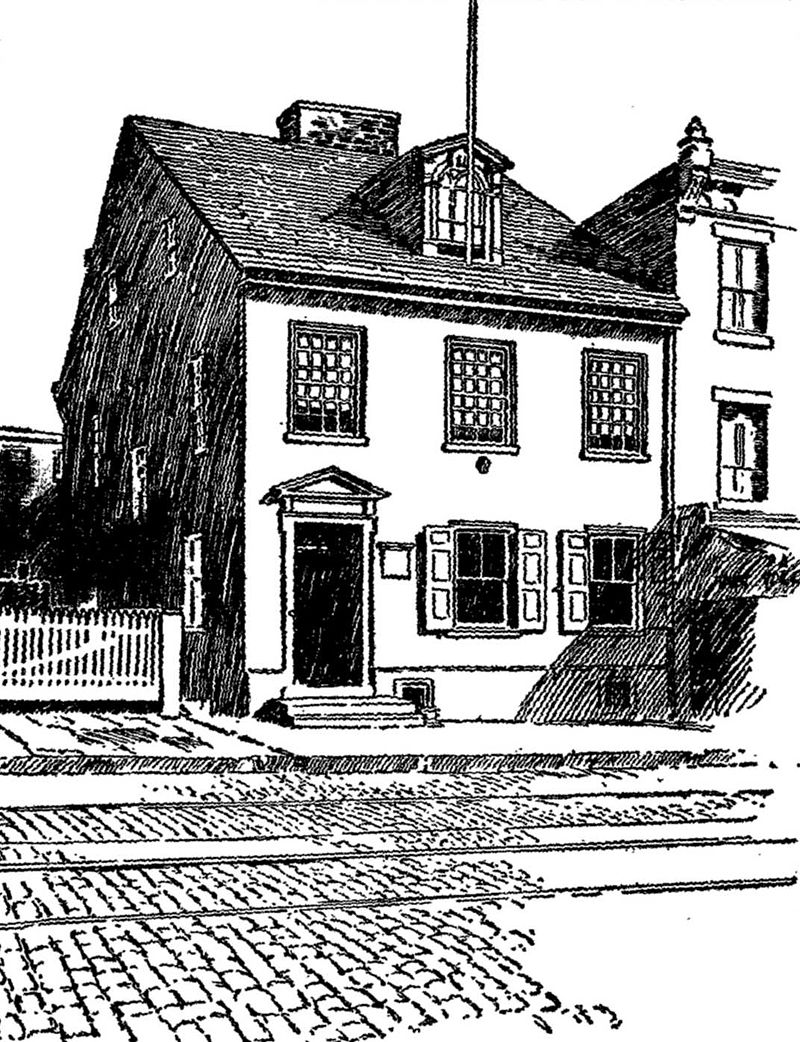 Thönes Kunders’s house at 5109 Germantown Avenue, where the 1688 Petition Against Slavery was written served at the Quaker meetinghouse.